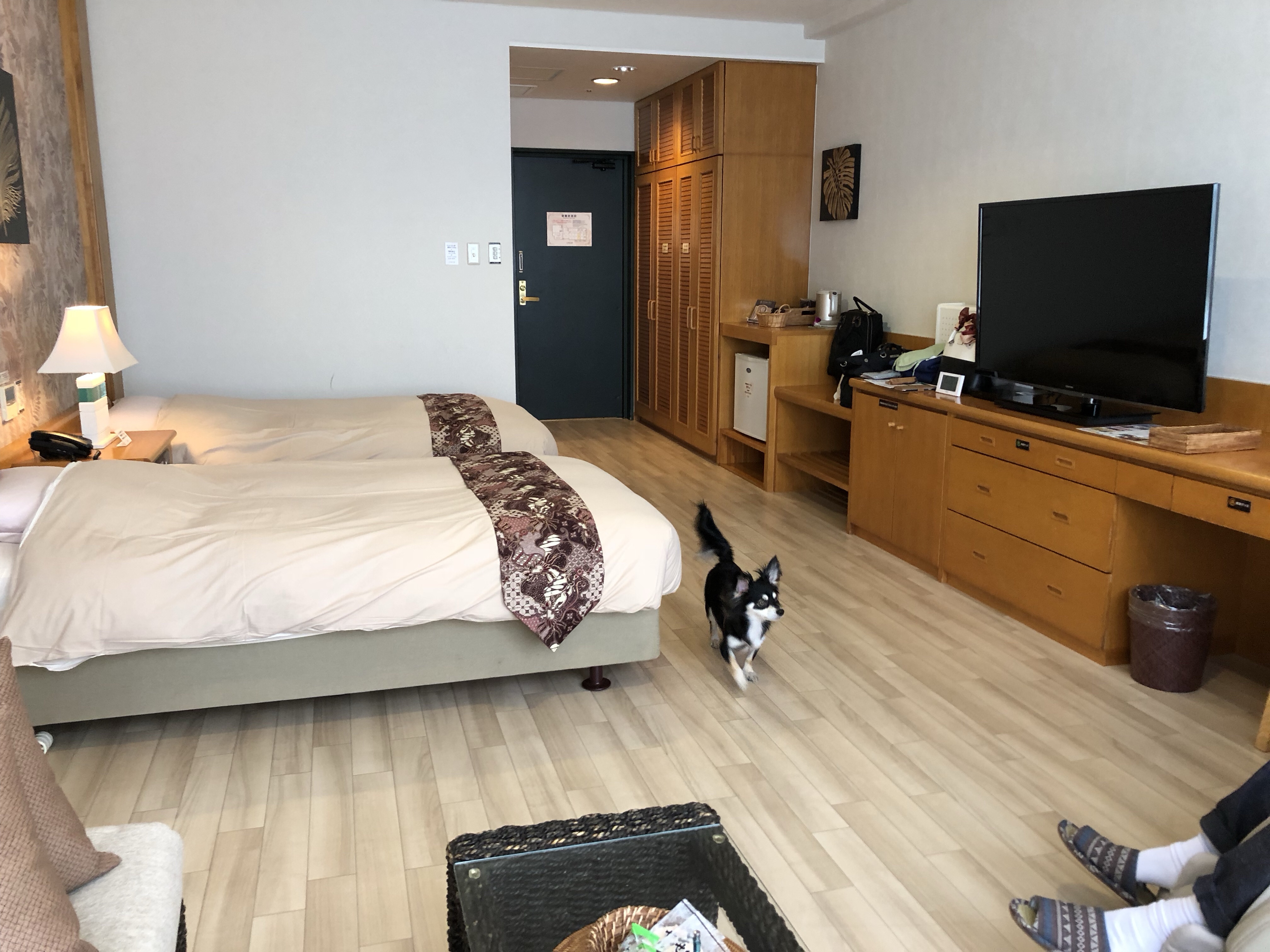 愛犬お宿の客室は、4タイプあるのですが、リゾート感あふれるバリ風洋室は格好いいんですけど、ワンちゃんと一緒なので、明るい部屋が良かったのでこちらのタイプを選びました。