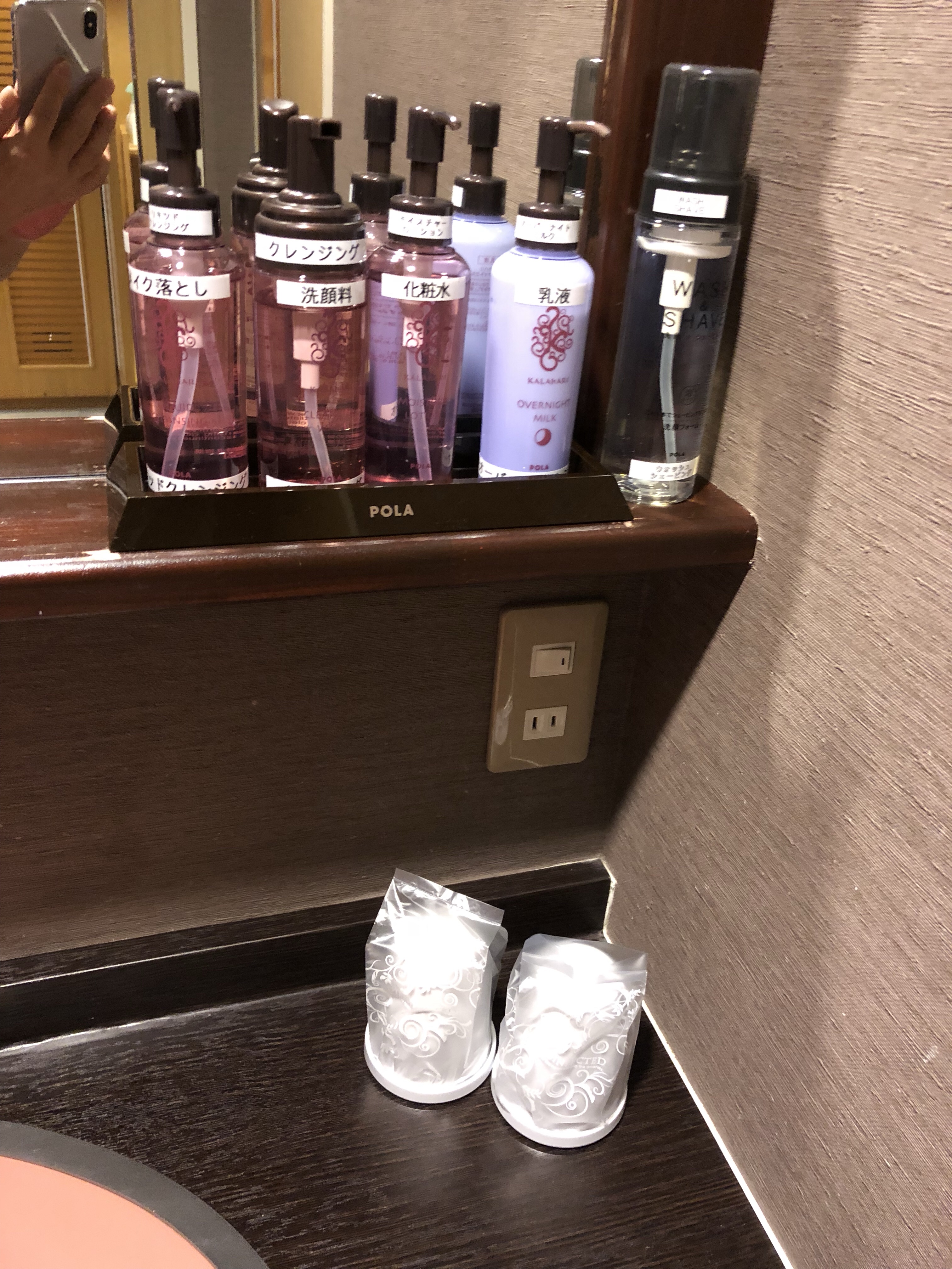 洗面台にも色々グッズが揃っていて、着替えさえあれば何も持たなくても宿泊出来ちゃう感じ!