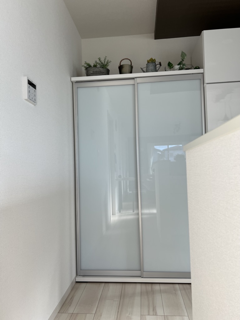 そして選んだのが引き戸タイプの食品庫にもなるカップボードにしました。
