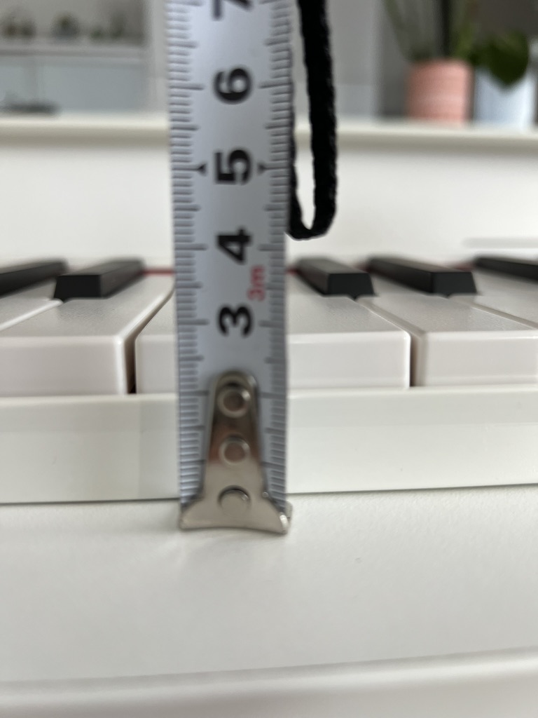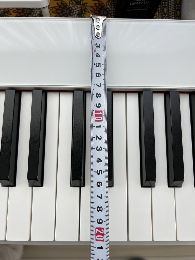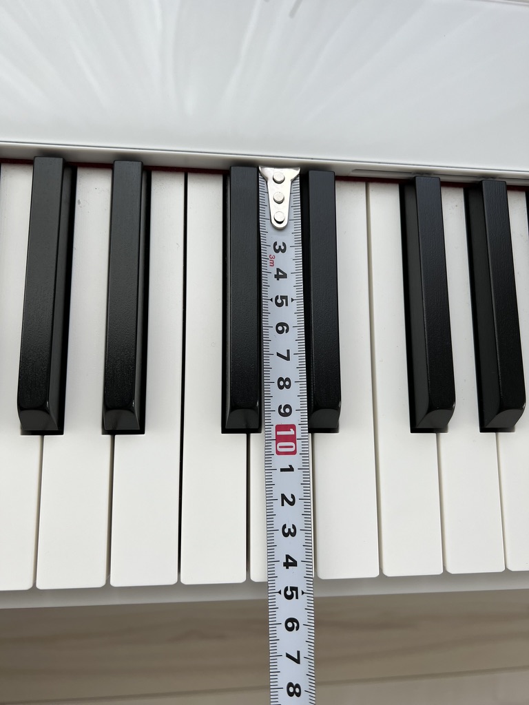 メイン機のPriviaは、ピアノの長さが20.8cmで、鍵盤の長さは15cmでほぼピアノと同じような弾き心地なので、少し鍵盤の長さが短いですが、それでも難易度の高い曲を弾いても特に指がつっかえることは感じないので、コンパクトに作られててる弾きやすいです。